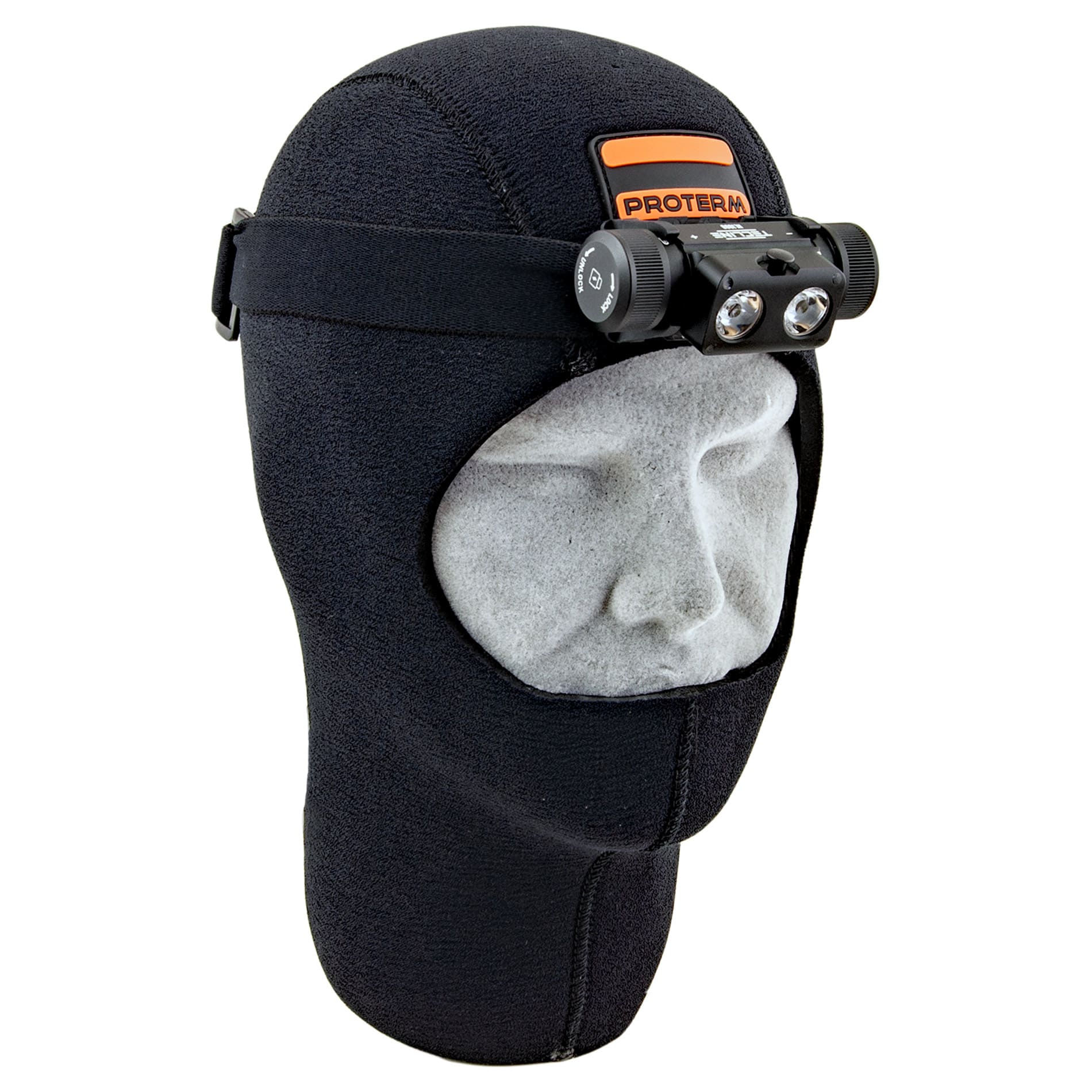 Head-mounted light, suitable for hands-free operations under water and on the surface.